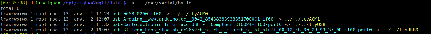 ls -l /dev/serial/by-idChanger le nom du dongle en fonction de ce que vous obtenez avec l'outil test.py.