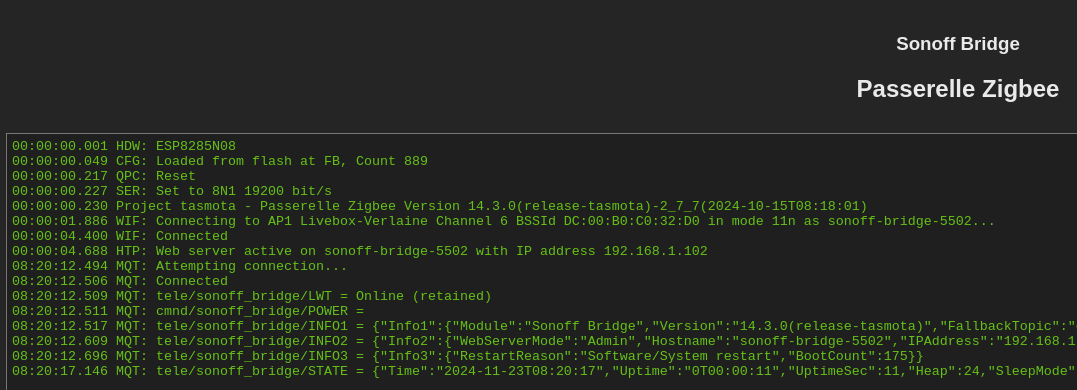 Changement de version du firmware : exemple avec un passage de 14.1 à 14.3 (réalisé le 23/11/2024 sur un Sonoff Bridge)