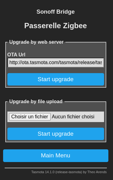 Puis, on revient à l'affichage du menu habituel. Il faut patienter pendant l'opération, le temps de télécharger le firmware et de redémarrer le Sonoff.