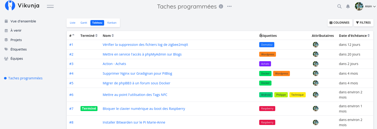 Vikunja, c'est un logiciel qui permet la gestion de tâches (planification, suivi, relance, ...). Comme souvent ici ! Il est open-source et auto-hébergeable.