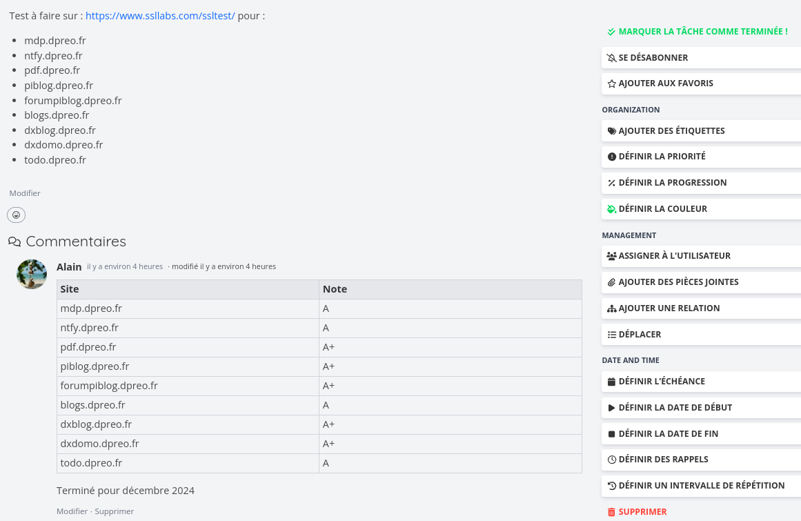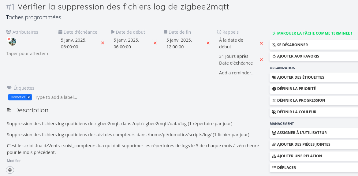 Pour les tâches qui se répètent, je rajoute des commentaires et j'ai un suivi bien pratique.